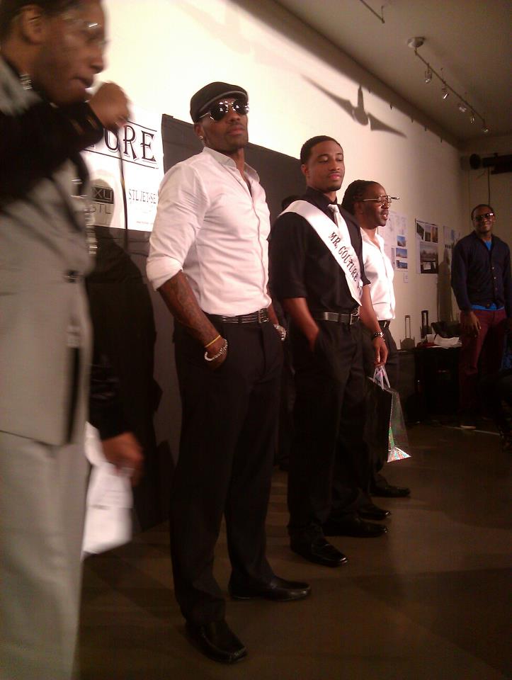On last Thursday, some of the Mista Couture team after getting interviewed on Show Me St Louis at the KSDK Window promoting the August 26 show. Pictured from left supporters MoTre Angelo, contestant Ricky Worley, contestant Motre Santana, Motre Jaeci,Chyrs Yvette (a judge), escorts Shilinda Harris, Andy Kay and Paris Caldwell, Show Me host Julie Tristian and YOURS TRULY.